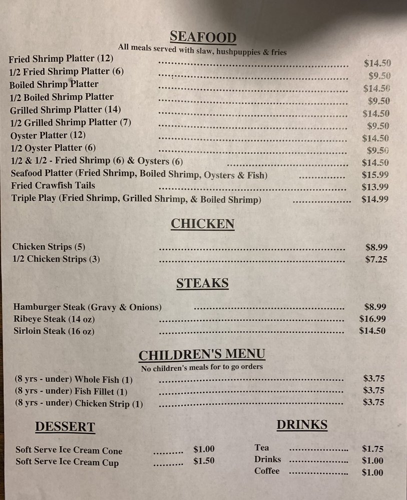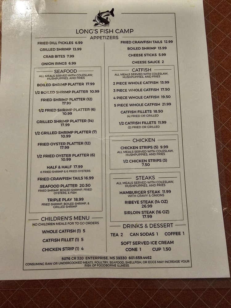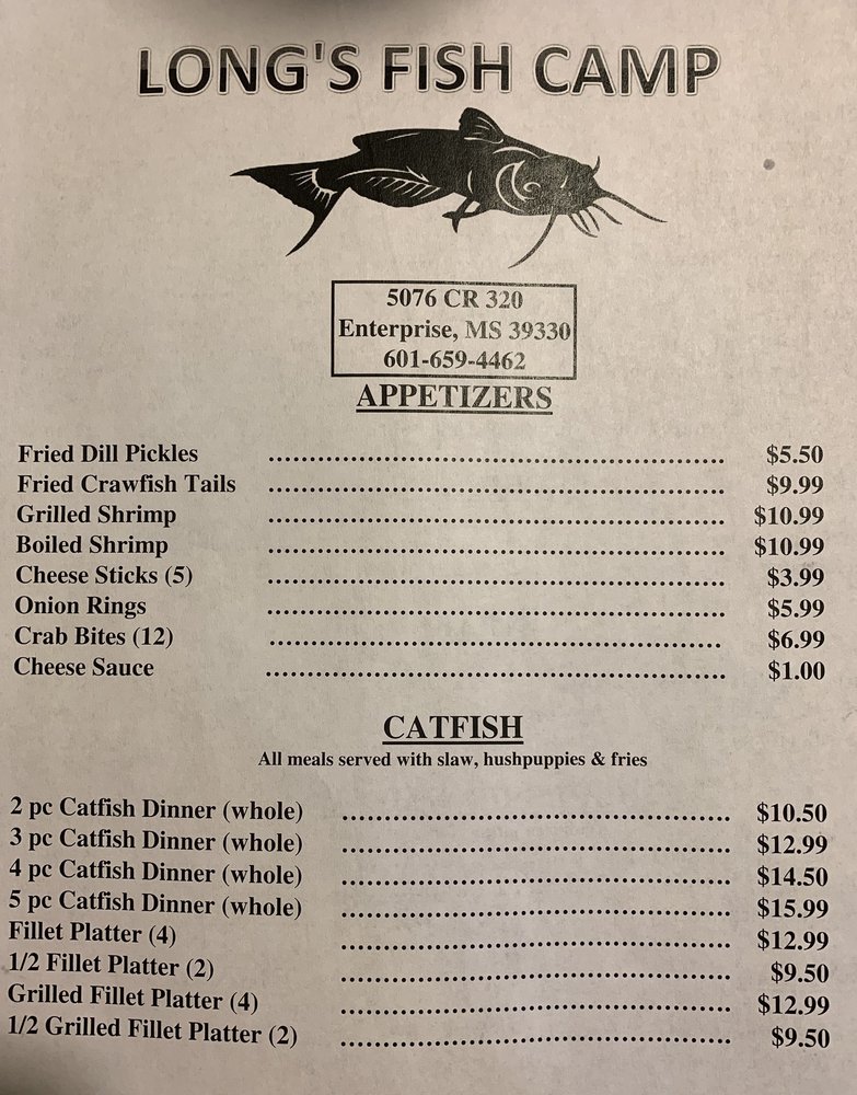 Long's Fish Camp Menu